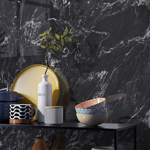 Jet black with dramatic white veining... kitchen backsplash & bathroom
