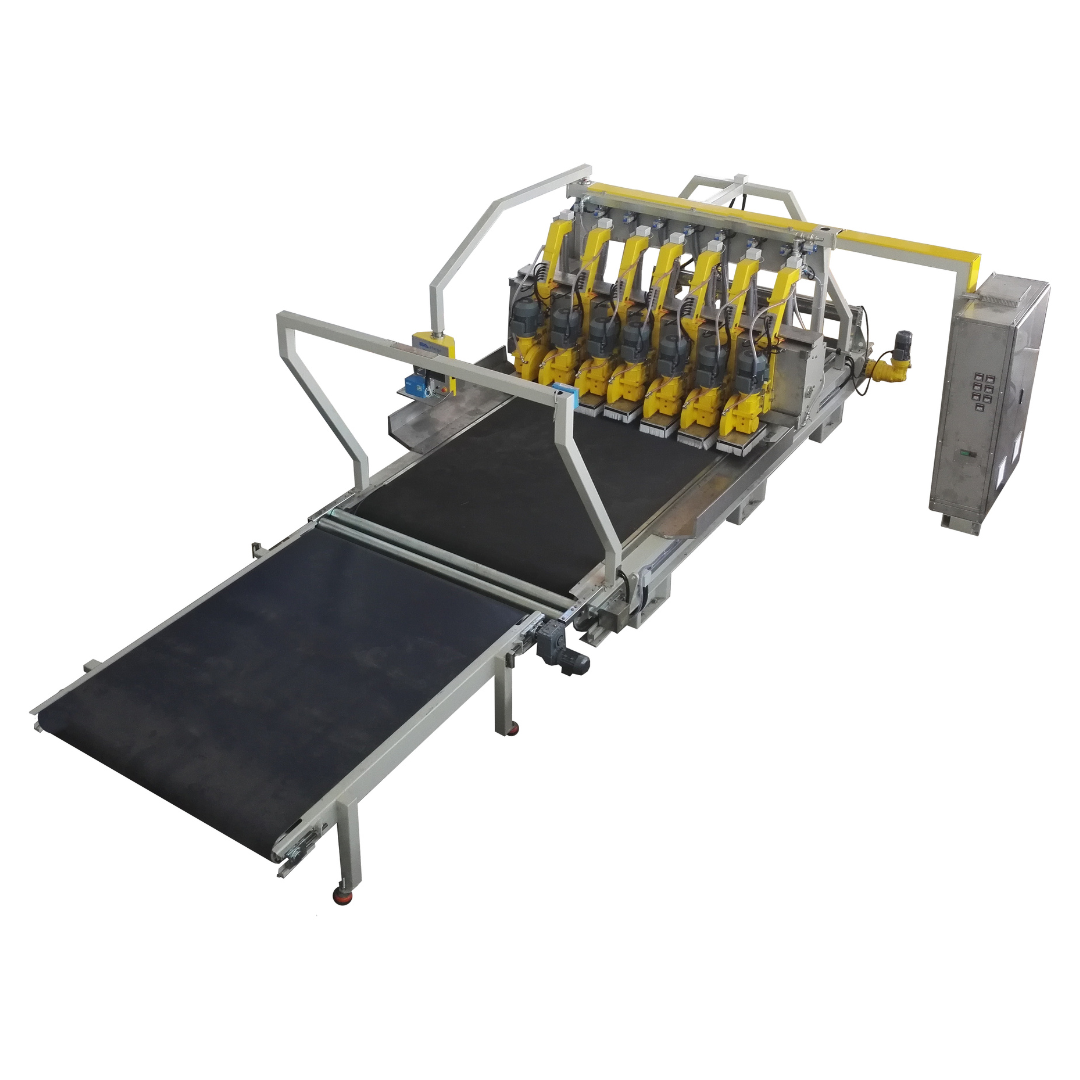 Efarge Dimensioning Line stands out for its ability to extend the life of the belt and cutting discs and provide a direct transition when installed behind the Marble Polishing Lines. Additionally, Efarge offer various options, such as the Seven Plus Eight Slab Dimensioning Line or the Two Plus Eight Tile Dimensioning line, in addition to the Two Plus Three Trimming and Dimensioning Line.